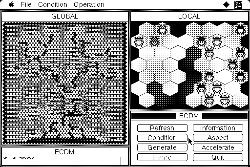 飼育のほうは,389,000 世代で引きついで,たった 11,000 世代の期間なのですが,やはり Classic II はもっと遅かった.それに現役バリバリの主力事務用機なので,飼育に専念させるわけにいかず,休みの日に計算させて,やっと400,000世代に到達しました.