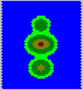 1,000世代に海退としました.この状態では全土が1つの島になります.すると1,040世代には分布を全島に拡がりました.その後,一時期(下記)を除き10,000世代まで全島が一種の状態が続きました.