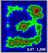 ここでは後者,つまり比較的好適な地域が,かなり遠い距離を隔てる障壁となる場合に,その地域の生存率と通過の可能性の関係について,一連の実験を行いました.各種の実験を行う際に設定のための基礎となります.