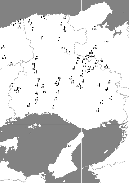 | 111 | 役場の北 | 鳥取 | | | 岩美町 | 35゚34'25" | 134゚20'09" | 1999/8/19 | 3 | 139-141 |