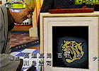 父が描いたものである.仕事場へ連れて行かれて見たことがある.ユニフォームに付けたときにイキイキとした虎を表現したいので厚みのある生地に描いたと聞いている.